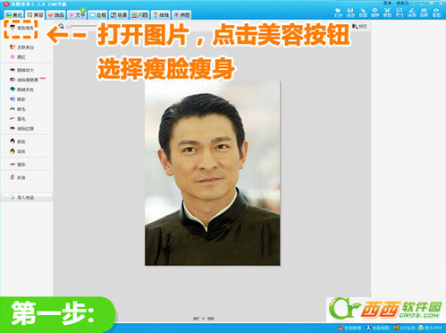 1、用美图秀秀打开一张要恶搞的图片,选择“美容”菜单下的“瘦脸瘦身”功能。